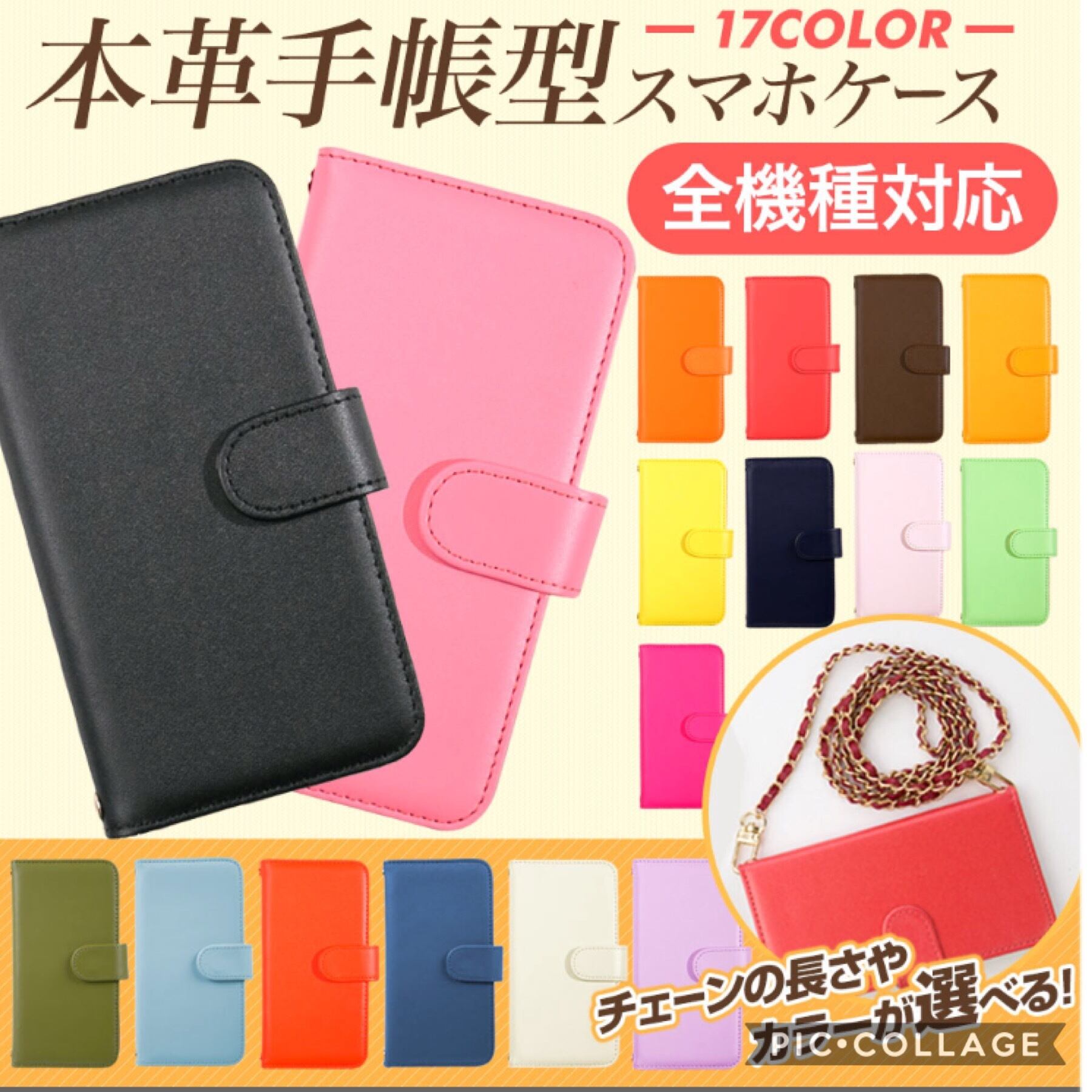 チェーン付きの手帳型のケースとなります。